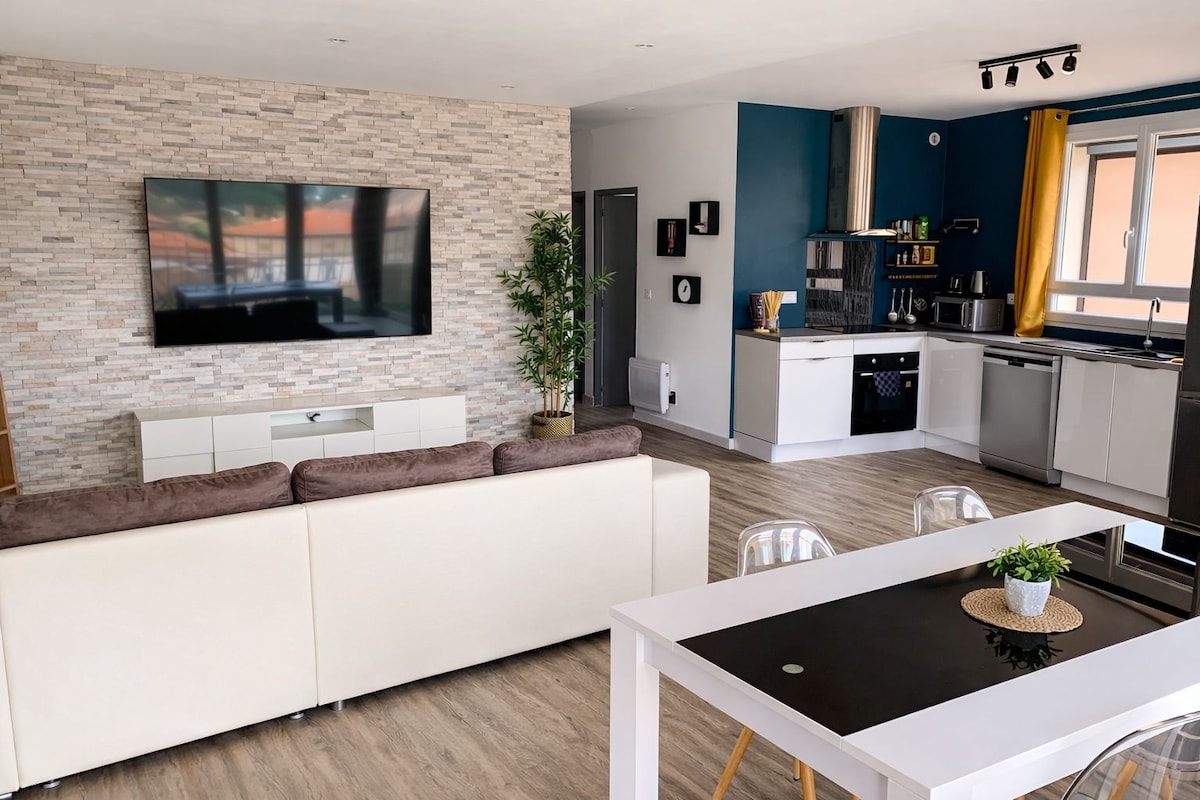 Este elegante apartamento de tipo 2, de 65 m2, es ideal para una noche relajante, romántica o para una base durante viajes de negocios. Totalmente equipado, una secadora, ropa de cama nueva y de calidad (160x200 cm), aire acondicionado en la habitación principal y en el dormitorio, y un pequeño exterior sin vecinos... Toallas y albornoces están a su disposición, y se ofrecen zapatillas. Venga a disfrutar de un lugar tranquilo, cerca de los servicios, situado entre Gaillac y Albi.