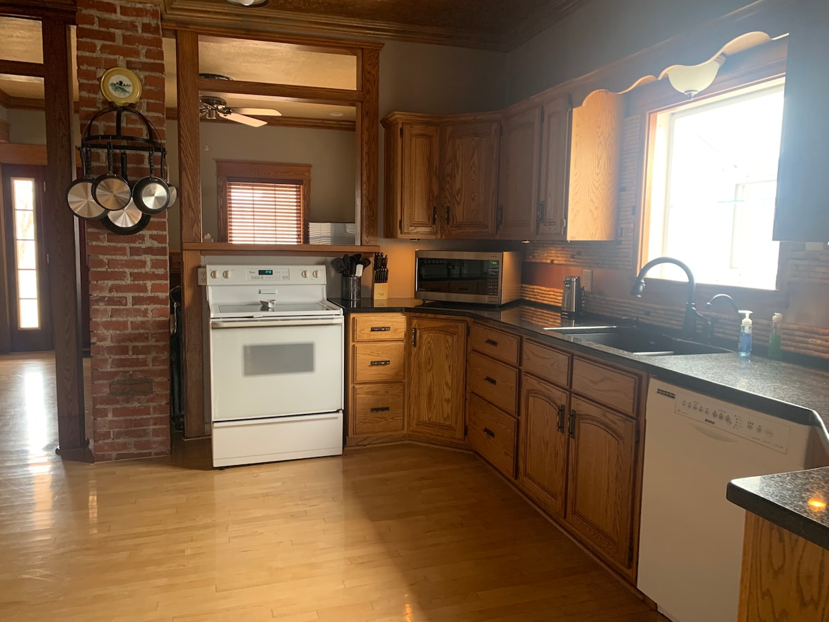 Esta hermosa casa de 3 dormitorios y 1,5 baños ha sido completamente remodelada pensando en la comodidad de los huéspedes. Situado en una tranquila calle al final de la carretera y en una parcela esquinera. A pocos pasos encontrarás una tienda de comestibles, Starbucks y otras tiendas y restaurantes. Al sur, experimentarás un espacio abierto, hermosos atardeceres y disfrutarás del aire fresco de Kansas. Los grandes ventanales iluminan la sala de estar, donde también encontrarás una estación de trabajo para mantener la productividad y disfrutar del paisaje.