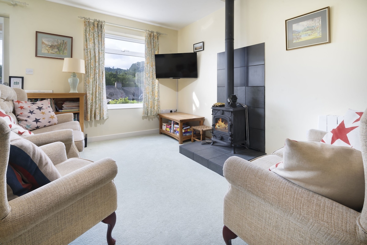 Relájate en este tranquilo y elegante espacio situado en un hermoso paisaje montañoso en el corazón del Distrito de los Lagos, declarado Patrimonio de la Humanidad. Ideal para parejas y familias Situado en el Cumbria Way, en el icónico valle de Langdale, esta casa cómoda y luminosa ofrece un gran acceso al aire libre y está cerca de Ambleside, Grasmere, Coniston y Windermere. Soleada sala de estar de planta abierta con estufa de leña. 3 dormitorios: 2 con camas tamaño king y 1 con dos camas individuales. Jardín con preciosas vistas a las colinas y bosques. Se admiten perros.
