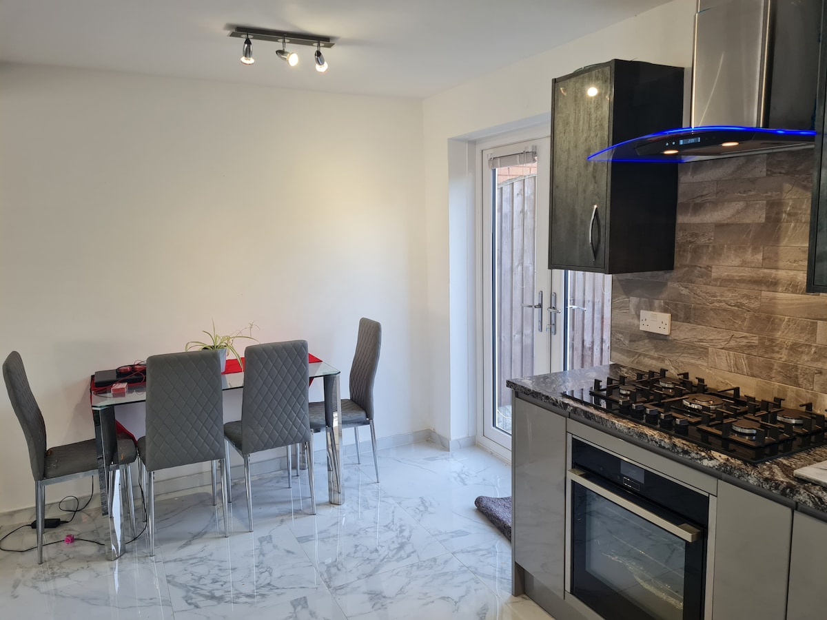 Acogedora casa de entrenamiento cocina abierta con todos los electrodomésticos nuevos. Cocina microondas, nevera, congelador, lavadora, secadora de vino, y todos los utensilios de cocina esenciales. Una zona de estar acogedora y una cama doble con una silla y televisión dobles. La planta superior consta de una cama doble tamaño en la suite. Se proporcionan toallas modernas. Se proporcionan toallas. El dormitorio también tiene una televisión montada en la pared. Esta propiedad es acogedora y compacta puede dormir bastante cómodamente. 2 adultos no aptos para niños 2 mascotas como máximo, pero podría considerar más.