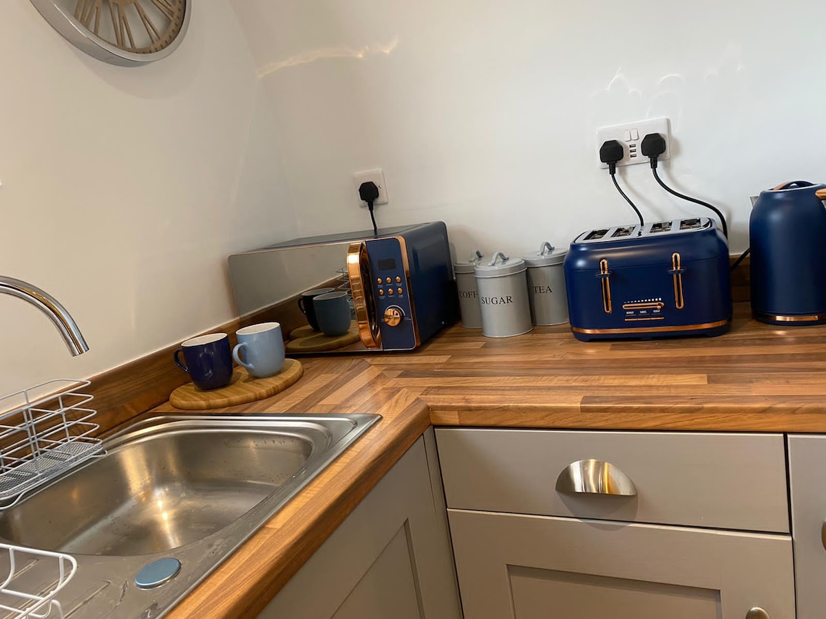 Acogedora cabaña/lodge de madera con calefacción central rodeada de hermosas vistas al campo. Ideal para aquellos que quieran estar a una milla de nuestro pueblo local, pero en una zona tranquila. Paseos para todos los niveles desde nuestra puerta. Se admiten dos perros de tamaño mediano. Los pubs locales admiten perros y tenemos muchos lugares para comer localmente. Vistas increíbles, una estufa de leña, una cama tamaño king con dosel muy cómoda, un sofá cama fácil de usar y una ducha fantástica han recibido comentarios de 5* por parte de muchos huéspedes satisfechos.