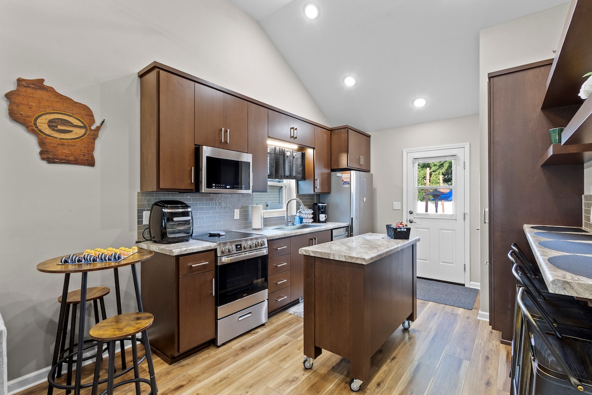 Camina hasta Lambeau y disfruta de tu propio cuartel general privado para aficionados. Esta casa de 2 dormitorios reformada se creó para los días de juego, conciertos y viajes familiares con un salón de garaje, televisores grandes y un patio para hacer fiestas. En el interior encontrarás una cama tamaño king, cocina completa, wifi rápido y llegada autónoma para que puedas relajarte desde el momento en que llegues.