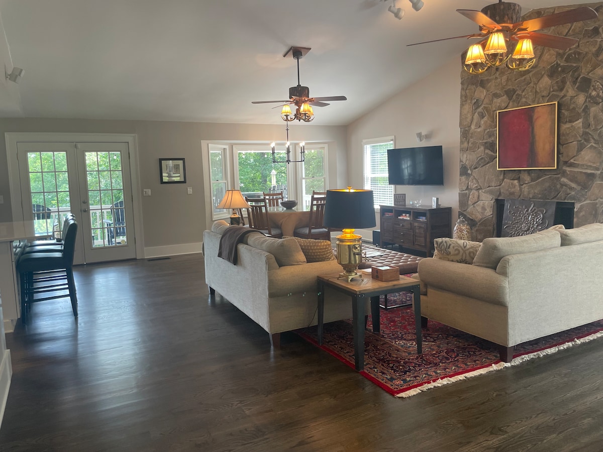El lago Oconee espera tu próxima aventura familiar. Nuestro tranquilo refugio tiene acceso directo desde nuestro muelle al lago y todo lo que ofrece, como paseos en bote, natación, pesca o kayak en nuestra tranquila cala. Nuestra casa es un espacioso oasis de dos niveles para tu reunión familiar. Hay dos niveles de espacio habitable, tres dormitorios, tres baños, dos cocinas completas, mesa de billar, una galería frontal con asientos y una amplia terraza con opciones para comer y hermosas vistas al lago. Mascotas limitadas solo a perros.