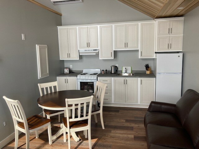 CONCEPTO ABIERTO unidad de un dormitorio con una cama tamaño queen y un sofá cama doble extraíble... cocina totalmente equipada... baño de 3 piezas... Internet inalámbrico... TV por cable... patio compartido... y nuestras joyas más nuevas, un sitio de fogata compartido con asientos adirondack y una bañera de hidromasaje compartida para 7 personas, ambos ubicados en el patio trasero... alquiler diario, semanal o mensual... servicio de lavandería disponible... mascotas bienvenidas... cerca del supermercado local, licorería, pub local, restaurantes, farmacia, parque infantil con almohadilla de chapoteo...