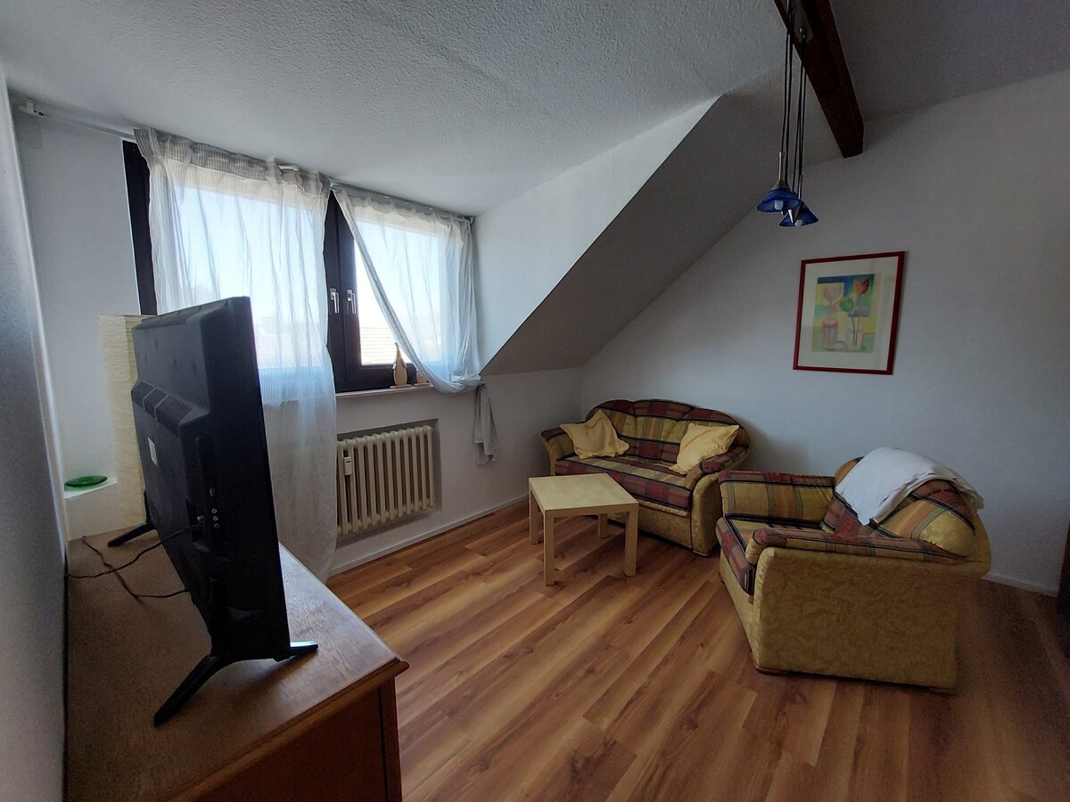 Nuestro alojamiento está en Ratingen-Lintorf en las afueras de Düsseldorf. Aeropuerto (11 km), Düsseldorfer Messegelände (13 km). El departamento se encuentra en una casa de dos familias con estacionamiento justo enfrente de la casa. En 5 minutos a pie, una zona forestal con estanque te invita a caminar y correr. Se puede llegar a varios supermercados y a un pequeño centro de la ciudad a menos de un km. Una parada de autobús con conexión a las estaciones de Düsseldorf y S-Bahn se encuentra a pocos minutos a pie. Apreciarás enormemente mi alojamiento por la limpieza, la comodidad y los buenos servicios, así como por la paz y la tranquilidad de la casa. Mi alojamiento es bueno para parejas, viajeros solitarios y viajeros de negocios.
