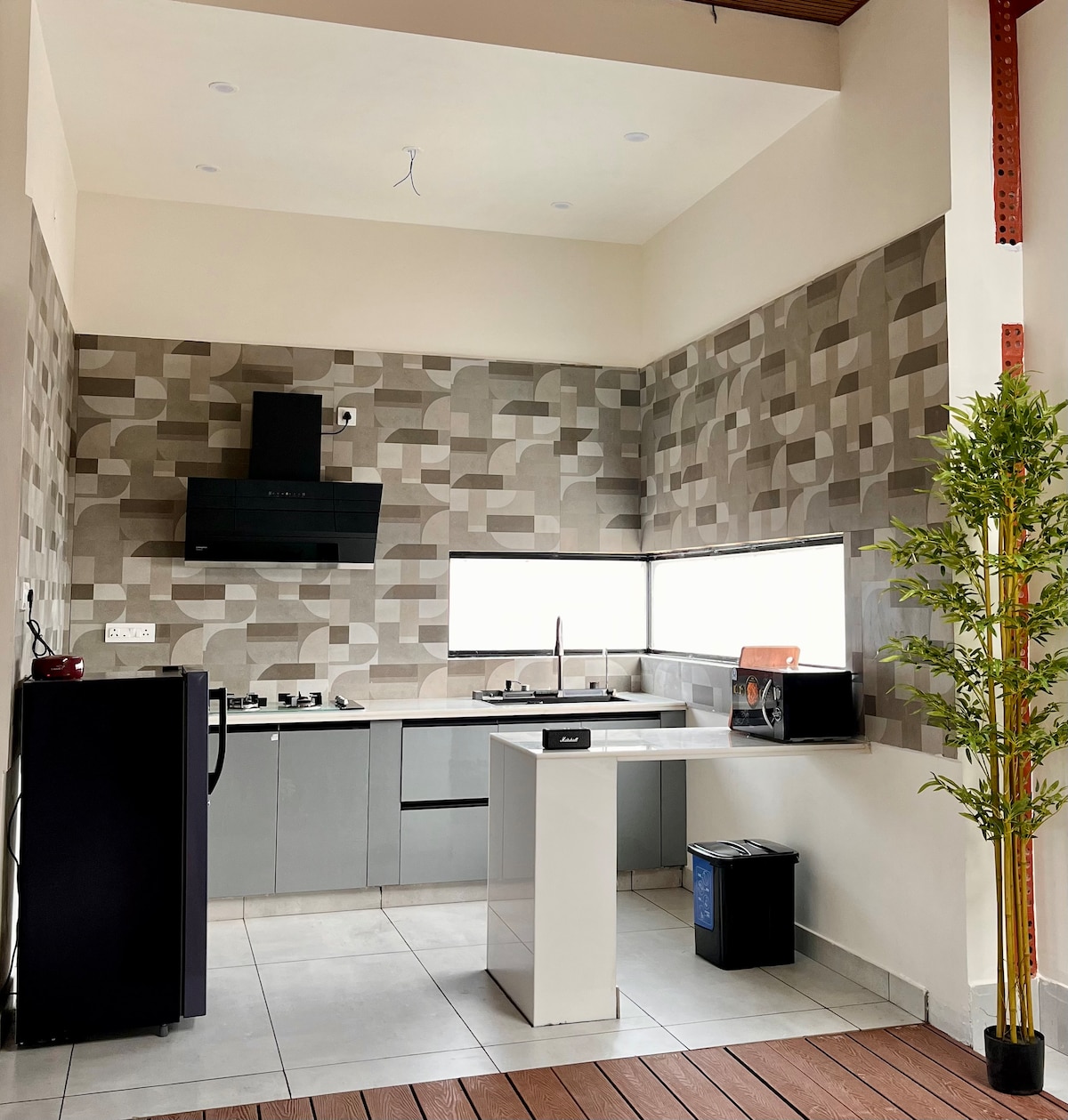 ✨ Ático privado de lujo con terraza enorme | Corazón de Mysore ✨ Disfruta de Mysore con estilo desde este moderno y lujoso penthouse de 1BHK ubicado en un barrio tranquilo y privado, pero cerca de las atracciones más famosas de la ciudad. Perfecto para parejas o amigos (3 adultos como máximo) que buscan una escapada o una escapada tranquila a la ciudad, este penthouse de hermoso diseño cuenta con interiores minimalistas, una enorme terraza privada tan grande como la casa en sí y todas las comodidades necesarias para una estancia relajada.