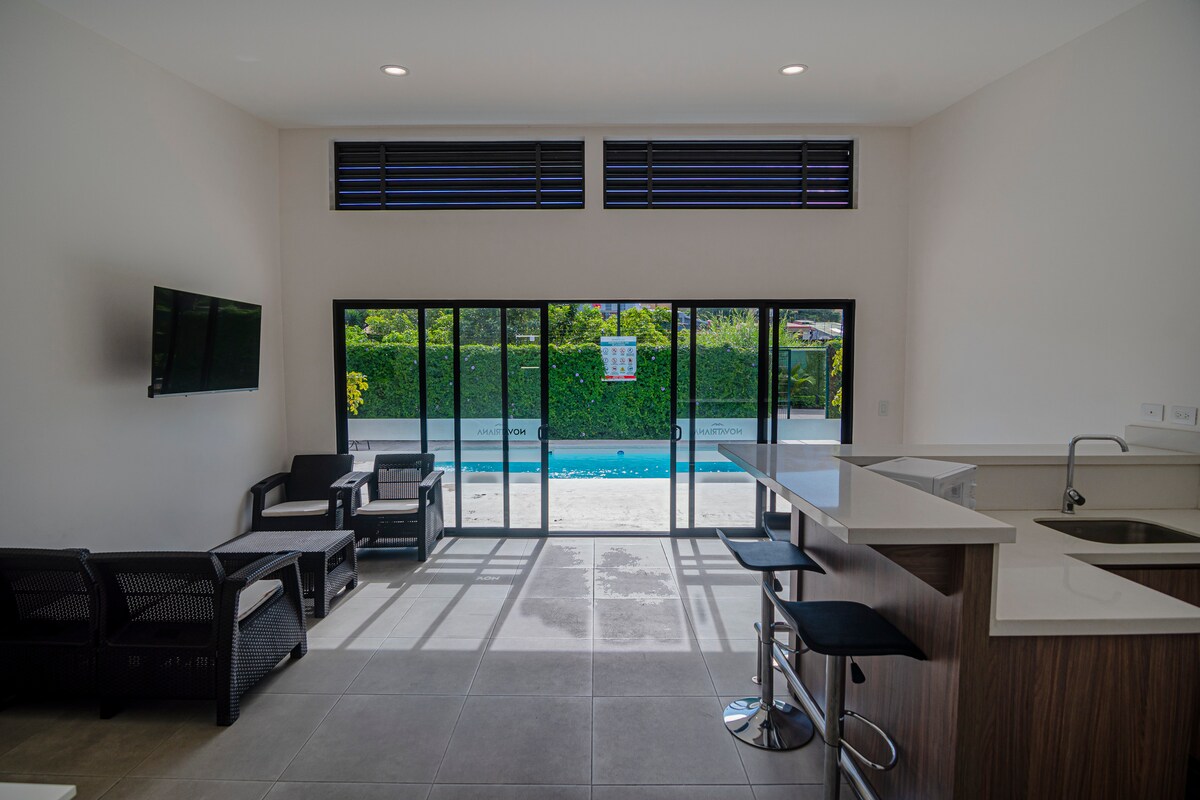 Este alojamiento tiene una ubicación estratégica: ¡será muy fácil planear tu visita! Lugar perfecto, ubicación perfecta. Este apartamento de 3 dormitorios está totalmente equipado y tiene todo lo necesario durante tu estancia. El apartamento tiene aire acondicionado, cocina, sala de estar cómoda y 2 baños. El apartamento Novatriana es genial, tiene una bonita piscina, gimnasio, zona de coworking, parque infantil, seguridad las 24 horas y mucho más. Situado a 5 minutos de Citymall, Walmart y del aeropuerto SJO.