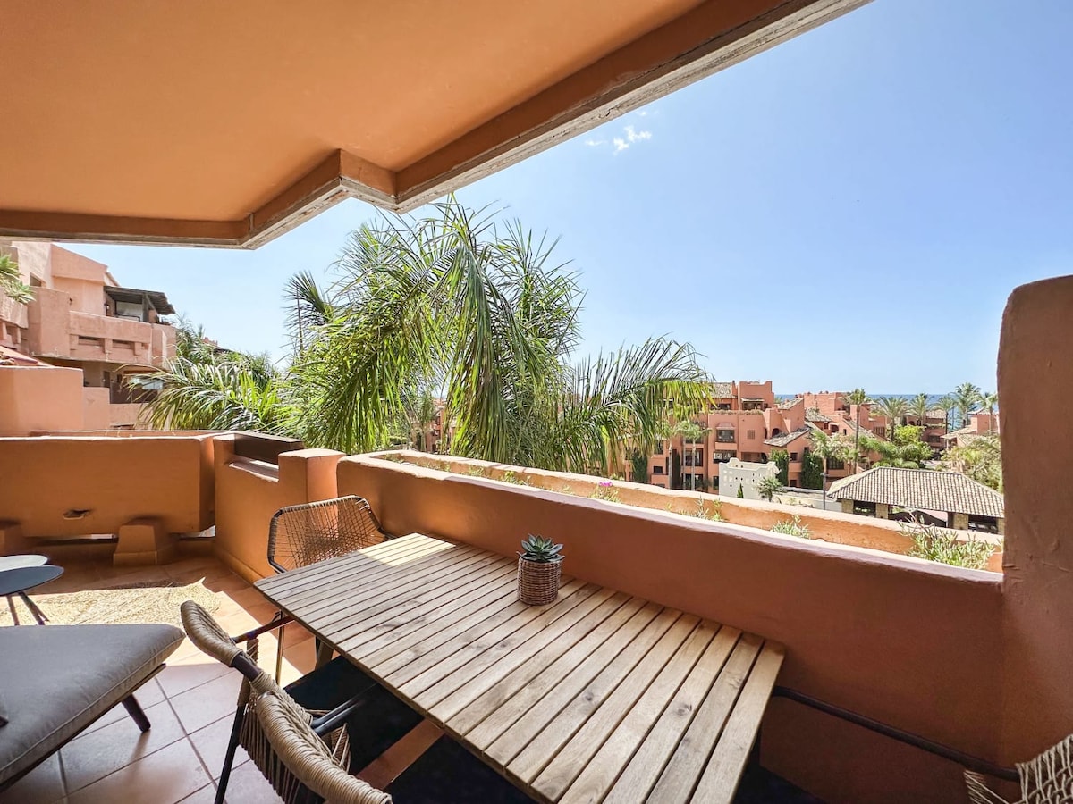 Our new, HIGHend apartment, just 8 minutes from Marbella's center. It offers sea views, creating a tranquil setting for your Spanish holiday. The apartment has Scandinavian elegance w/ clean lines, neutral tones, & minimalist design, creating a bright & sophisticated atmosphere for a memorable stay. Our guest can access the spa w/ heated pool, sauna & gym, all free of charge w/ fantastic sea views. The gym is well-equipped w/ top-line machines & the clubhouse adds a social element to the stay.