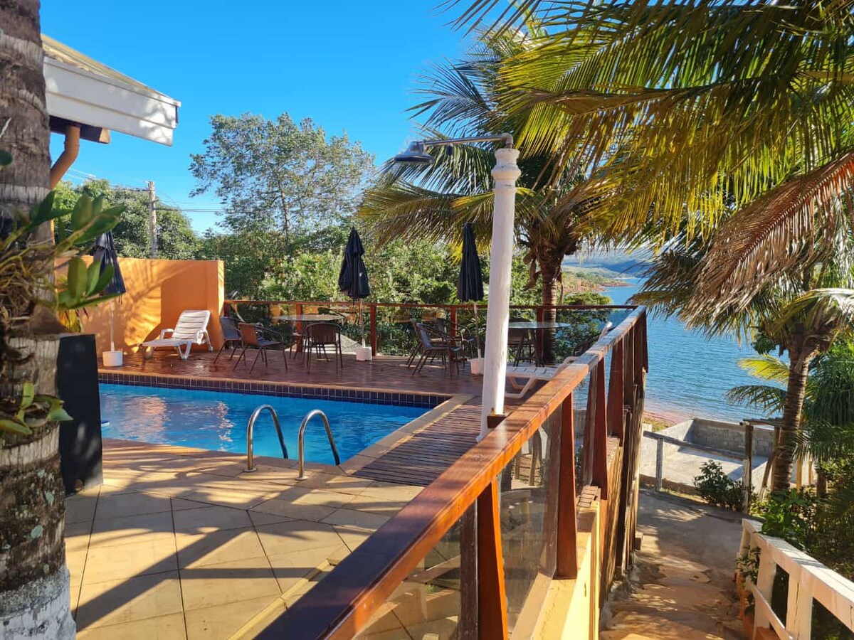 Casa grande y espaciosa amueblada con 4 dormitorios, dos en suite, baño social interior, despensa con sala de TV, cocina, despensa, gran balcón, barbacoa, mostrador, mesas, sillas, baño al aire libre, piscina con cascada, espacio multiusos entre el balcón y la piscina, estacionamiento para 8 coches, terreno vallado con pantalla, vista de la presa, a solo 150 metros de la pista de MG 050, a 10 kilómetros de Capitólio y a 15 km de Turvo en la presa de Furnas, a 20 kilómetros de Escarpas do Lago.