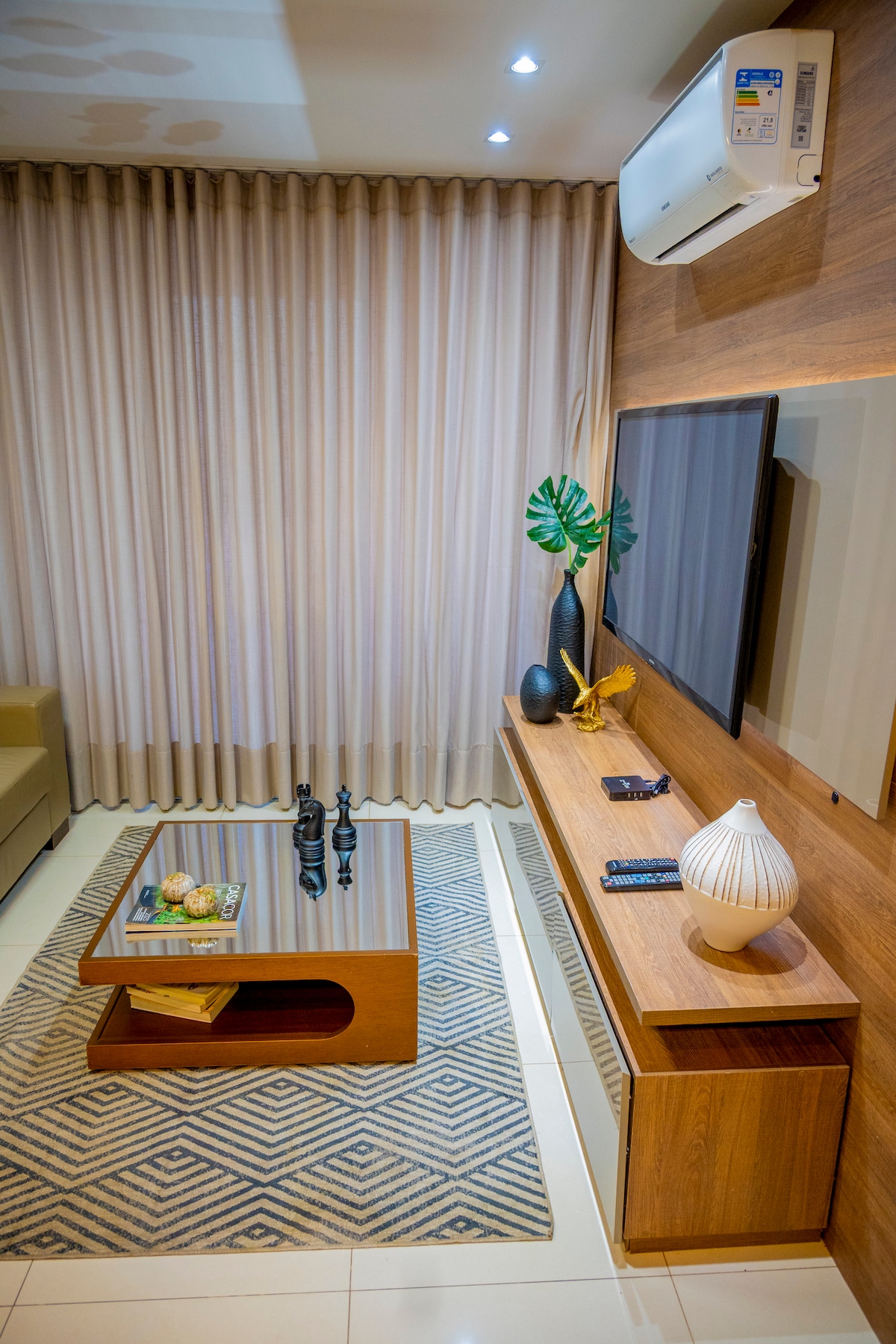 Apartamento amueblado, de 3 dormitorios e ideal para alojar familias o grupos de amigos. Está en Cruzeiro Novo, a 20 minutos del aeropuerto y a 15 minutos del Eixo Monumental, que da acceso a los principales puntos de Brasilia. La propiedad cuenta con cocina completa, muebles nuevos y sofisticados, así como los electrodomésticos y utensilios necesarios para una estadía acogedora, tales como: TV de 43" con streaming, lavadora y secadora, lavavajillas, cafetera, tostadora y aire acondicionado.