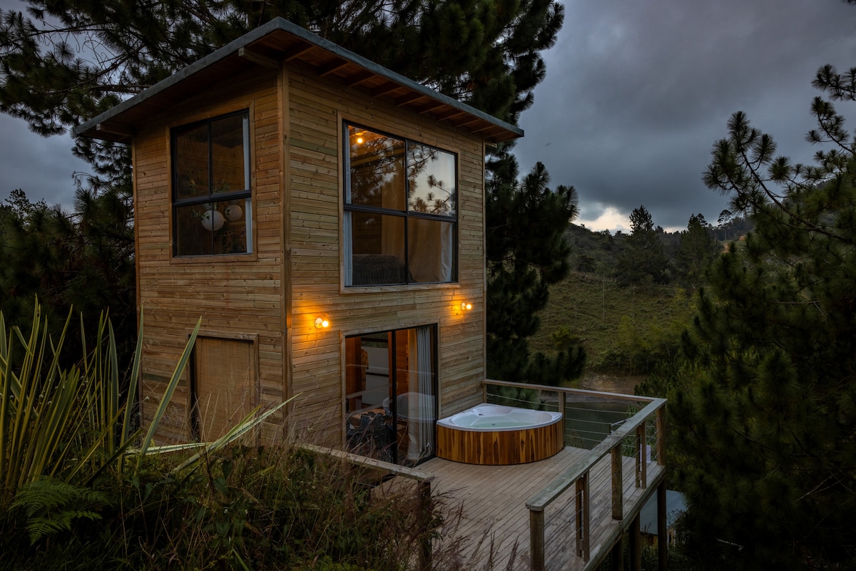 Cabaña acogedora con una vista increíblemente indescriptible. Tienes acceso a la represa, al muelle, jacuzzi, kayak y mucho más. Algunos de nuestros servicios tienen un valor adicional. Puedes nadar, caminar por senderos ecológicos, disfrutar del bosque nativo y de la quebrada, escuchar los pájaros cantar en la madrugada y sentir una paz que te llena el alma, al mismo tiempo que emprendes la aventura de reconectarte contigo y con la naturaleza en este pedazo de paraíso.