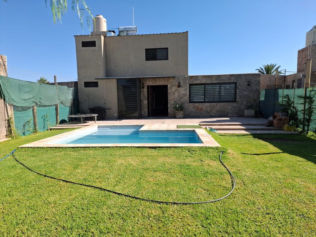 Hermosa casa con lo necesario para disfrutar en familia: - Piscina climatizada abierta todo el año - 3 Habitaciones - 3 baños (dos con ducha) - Lavandería - Hermosa cocina y comedor - Smart TV 55" y 32" + Apps - WiFi - Jacuzzi p/ 1 persona - Quincho equipado con AA, baño, churrasquera y horno. - Jardines. - Cochera privada Buena ubicación en un barrio tranquilo, con una variedad de comercios cercanos (incluidos supermercados). La casa se encuentra a 8 min del aeropuerto y 12 del Centro de Mdz