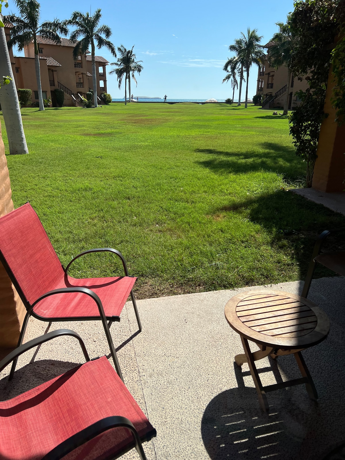 Condominio frente a la playa para 2 personas en planta baja. Cuenta con 1 cama King Size cocina completa , sofa, sky, lavadora secadora y terraza con salida a la playa con la vista al atardecer más hermoso en San Carlos . Se encuentra ubicado en planta baja y con salida a la playa.