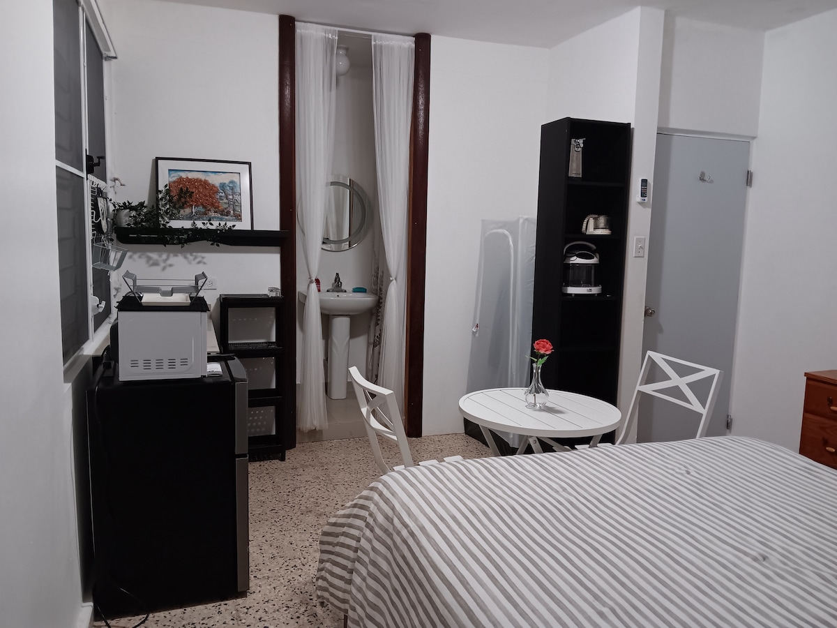 Acogedor Studio moderno y céntrico. Incluye: Cama King, TV, Microhonda/Nevera/Cafetera, NO ESTUFA Disfrutaras de una ubicación donde podrás desplazarte en minutos a lugares como Restaurant, Cine, Centro Comercial, Playa y Aeropuerto SJU También Areas Turisticas como: Viejo San Juan y sus encantos Distrito Tmobile Casa Bacardi Todo de 3 a 15minutos