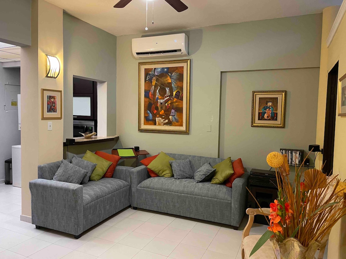 Moderno y acogedor apartamento de 2 habitaciones y 1 baño en casa de esquina junto a vía principal. Totalmente equipado para una estadía sin preocupaciones. Incluye estacionamiento y generador eléctrico. A solo 7 minutos de la autopista principal de San Juan y 15 del aeropuerto. Cerca de restaurantes, centros comerciales, parque infantil y vereda para caminar. Zona residencial y con excelente acceso.