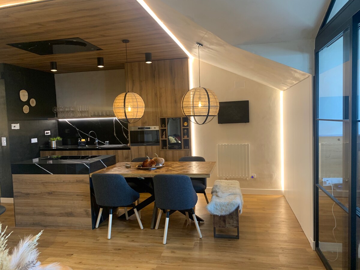 El apartamento está a 5 minutos a pie de la plaza del pueblo y a 5 minutos del inicio de varias rutas de senderismo. Está a 15 minutos en coche de Granada y a 30 minutos de la estación de esquí de Sierra Nevada. Tiene 2 habitaciones y un gran salón con cocina abierta al mismo. Además posee una amplia terraza para poder hacer comidas y cenas.
