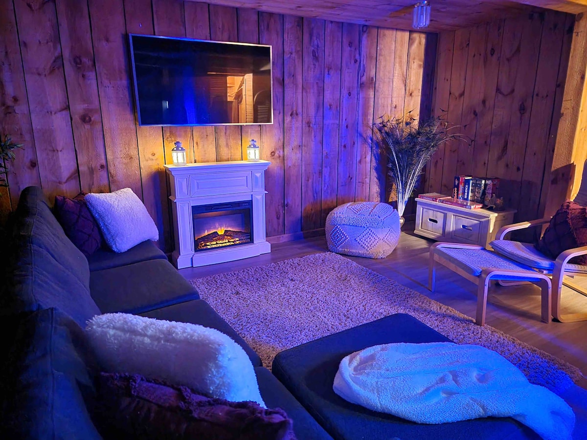 WOOD BURNING SAUNA, HOT TUB, COLD PLUNGE ⭐️ONE OF A KIND, 1800 sq. ft BARNDOMINIUM on 18 acres of total privacy! Serene, country getaway in the picturesque countryside of Erin⭐️Full-size kitchen,harvest table,spotless bathroom, couch & chairs, floor to ceiling glass doors⭐️Cozy loft with tv, comfy queen bed & oversized couch. ⭐️Soaring trees & trails,grain bin bar on concrete pad with fire-pit, tables & chairs.Wood deck with patio set.Separate cabin with double bed. You won’t want to leave!