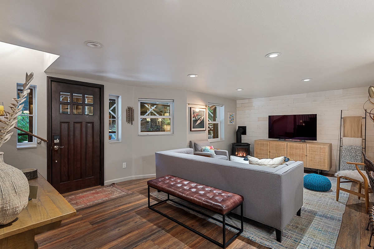 Artist's Perch ~ Ubicado entre majestuosas secuoyas costeras, Artist's Perch ha sido completamente reinventado, por dentro y por fuera, por un diseñador de interiores emergente de San Francisco. La casa combina un diseño refinado con la serenidad natural, con toques cálidos y artísticos en todo el espacio y una impresionante sauna exterior eslovena importada para disfrutar de lo último en relajación. Entra en una cocina totalmente equipada que te invita a cocinar comidas inspiradas, ya sea que prefieras cenar en el interior o asar a la parrilla bajo las secuoyas.