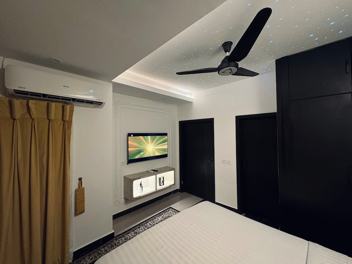 Welcome to your perfect home away from home! This stylish 2-bedroom apartment offers comfort, entertainment, and convenience ideal for families, couples, or business travelers. ✨ What you’ll love: Two spacious bedrooms One bedroom is designed as a private home cinema with a 110inch screen, perfect for movie nights 🎬 Attached bathroom for added privacy and comfort Bright and comfortable living hall, and a kitchen 🔑 Enjoy privacy, comfort, and a unique cinema experience—all under one roof.