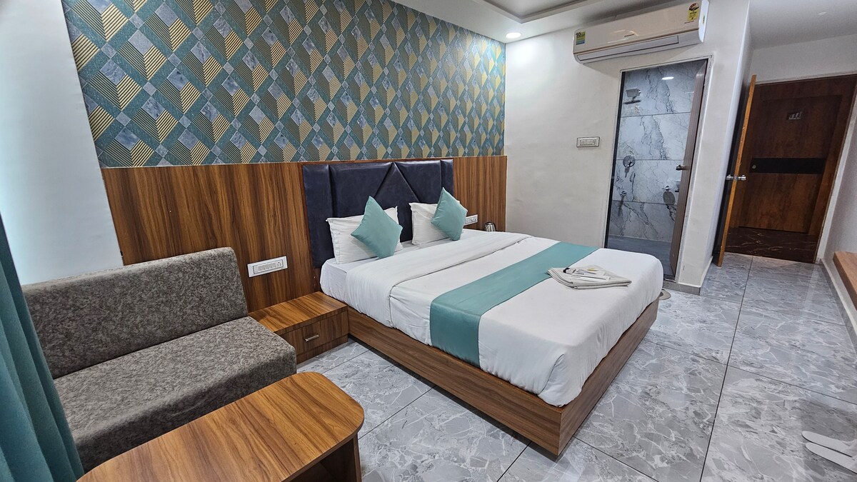 "Entra en tu santuario en el Hotel Serene Stay, donde te esperan comodidad y estilo. Nuestras habitaciones cuidadosamente diseñadas ofrecen un refugio tranquilo en medio de la vibrante energía de Diamond City (Surat). Sumérgete en la ropa de cama lujosa, relájate en las comodidades modernas y sumérgete en el ambiente tranquilo de tu entorno. Ya sea que estés aquí por negocios o por placer, nuestras habitaciones ofrecen el refugio perfecto para una noche de sueño reparador o un día de trabajo productivo. Te damos la bienvenida a tu hogar lejos del hogar en Hotel Serene Stay ”.
