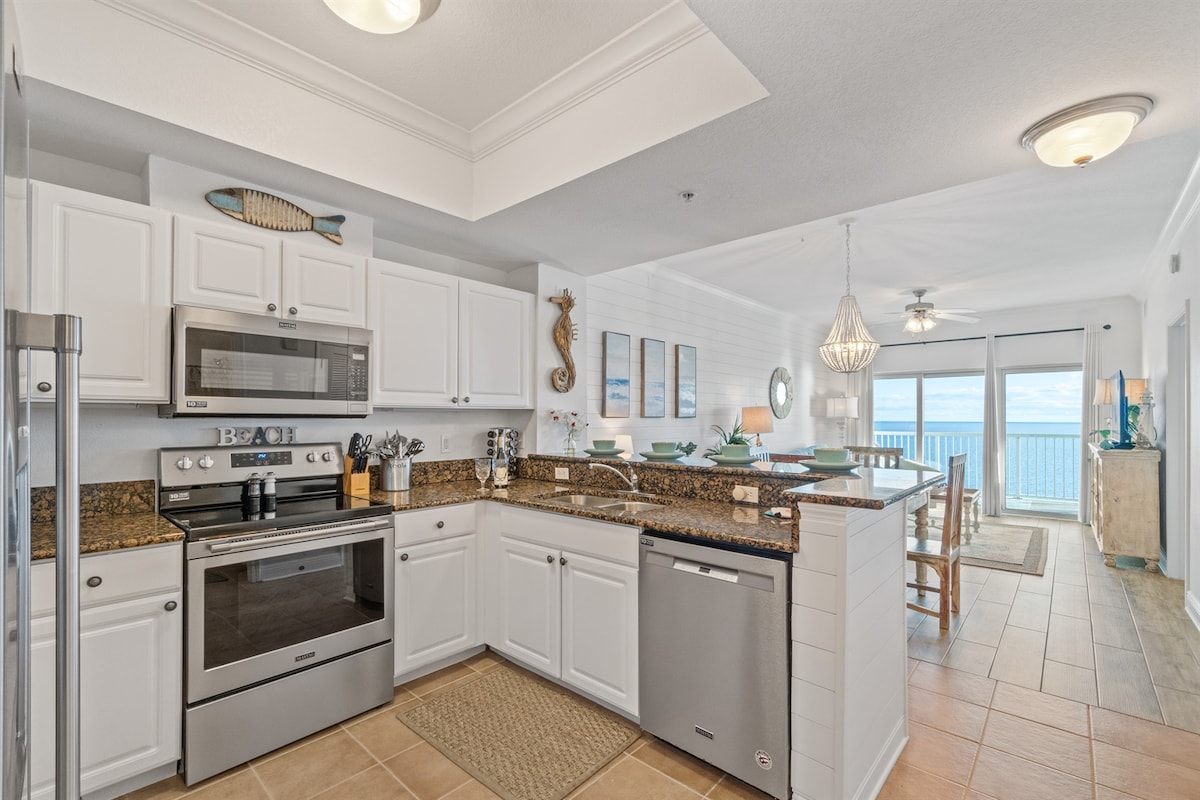 Despiértese con vistas panorámicas del golfo, desde el suelo hasta el techo, desde su dormitorio principal, la sala de estar y la cocina. ¡Disfrute de una estadía frente a la playa con decoración costera en uno de los complejos turísticos más lujosos de la zona! ¡Con una amplia playa, 4 piscinas, 3 restaurantes en las instalaciones más food trucks, un bar Tiki, parrillas, cancha de baloncesto, cancha de voleibol, cancha de tenis, cancha de pickleball, área de juegos para niños, spa y cafetería! ¡Nunca tendrá que salir del complejo turístico! Ubicado en la prístina y tranquila zona de Fort Morgan, está a solo 15 minutos de las zonas turísticas más concurridas.