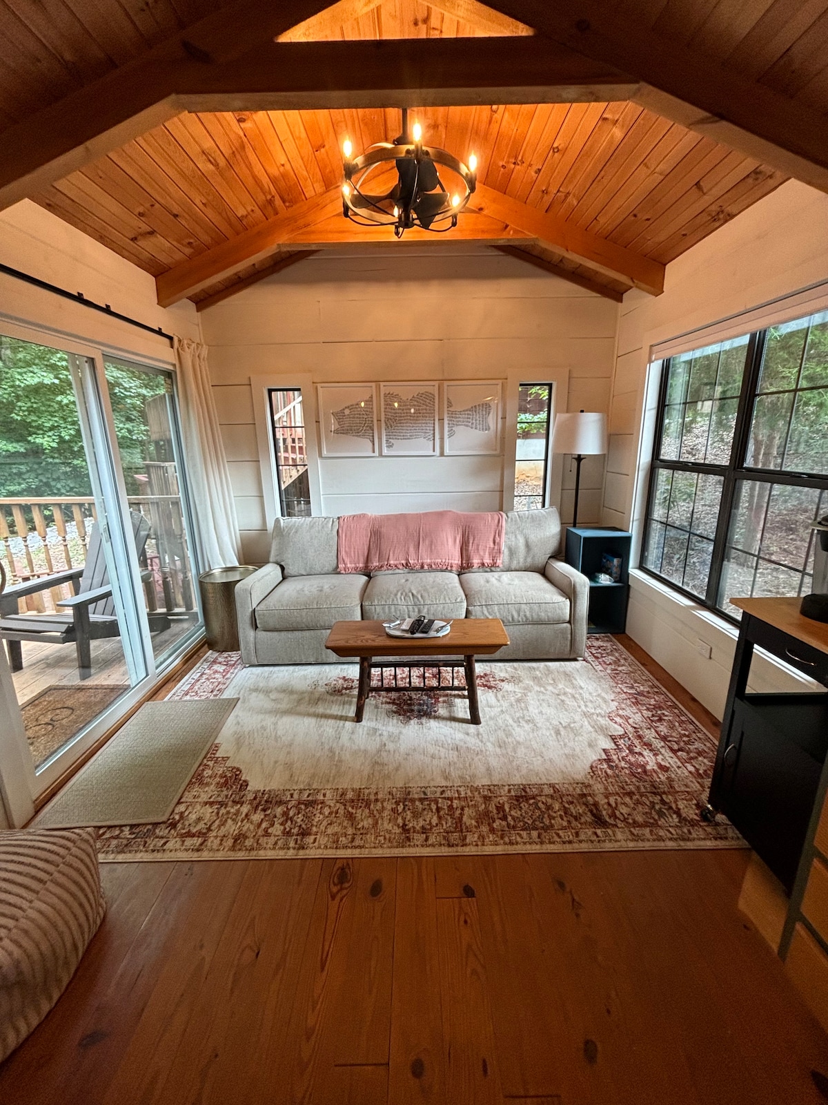 Cabaña privada ubicada en una tranquila comunidad lacustre con acceso al lago Hartwell. A 15 minutos de Lavonia/I85, a 50 minutos de Clemson y a 20 minutos de Toccoa. La estancia perfecta para viajeros, pescadores, cazadores, visitantes y profesionales contratados que se alojen en la zona. Amplio estacionamiento y fogata afuera con la naturaleza y el paisaje del campo. En el interior hay una sensación rústica y moderna amueblada con lo esencial, además de algunos extras como café, WiFi, TV y juegos de mesa. Descubre cómo es la vida en una minicasa.