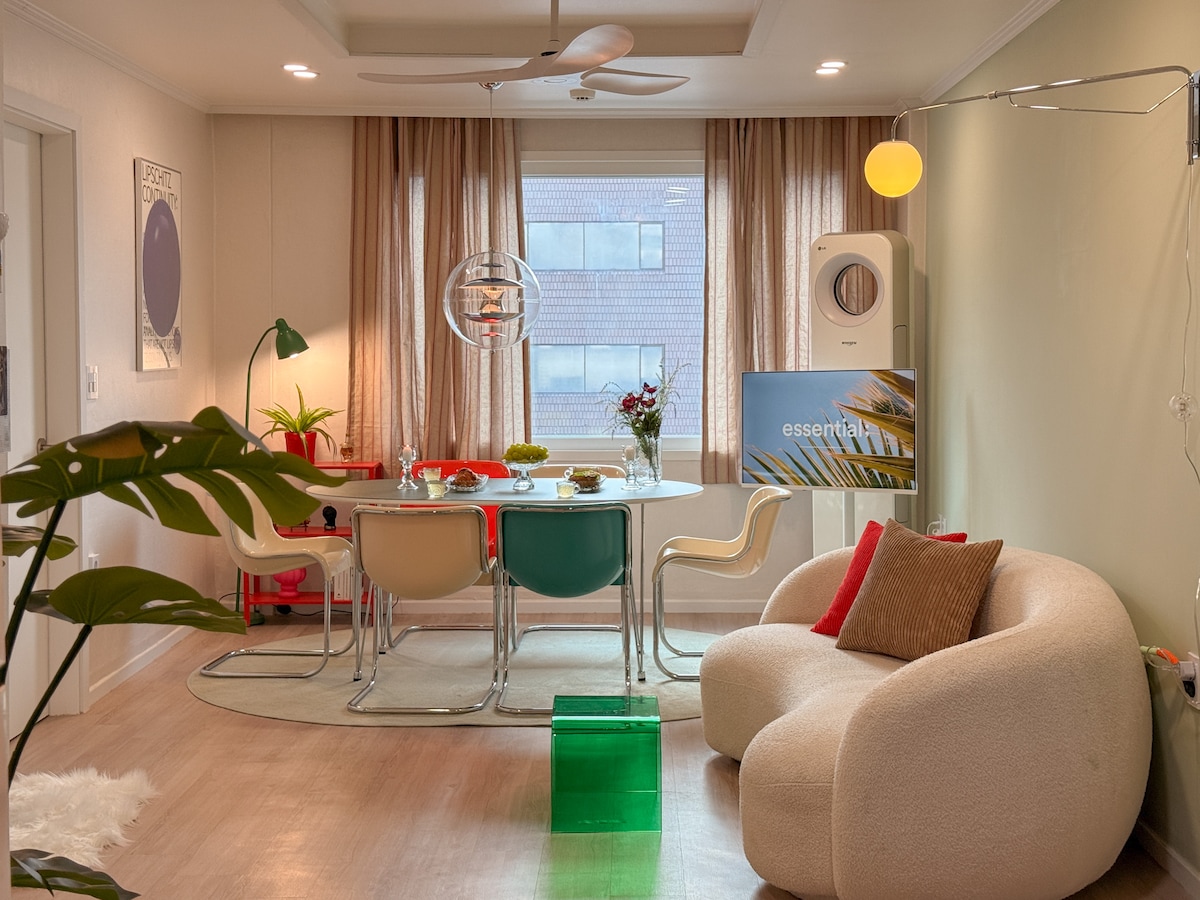 🏠건대역 6번 출구에서 3분 이내로 도착 하실 수 있는 감성 숙소입니다. 주변에 맛집이 많고 30평 규모의 넓은 장소로 10인 대형 테이블로 쾌적하게 브라이덜 샤워, 생일파티,가족모임등 다양한 모임을 할 수 있습니다 ●숙소는 엘리베이터가 없습니다. 계단을 이용해주셔야합니다■ 📸 디자이너가 직접 제작한 예쁜 가구와 소품이 있어서 예쁜 사진을 많이 남기실 수 있어요 공항버스(6013번) -인천공항 약100분 소요 광진구의회역 - 3분 거리 🏯 서울 주요 관광지(지하철) 성수역: 2분 잠실역: 8분 명동(을지로 입구역): 18분 강남역: 20분 경복궁역: 25분 홍대입구: 30분 📍 커먼그라운드와 양꼬치 거리, 롯데백화점, 롯데시네마, 이마트, 건대병원, 라움예식장에서 가까운 위치 25kg 대형 세탁기,건조기, 냉장고가 있어서 출장이나 장기 거주도 추천 🎲 보드 게임이 구비되어 있어 아이나 친구들과 즐거운 시간을 보내 실 수 있어요.