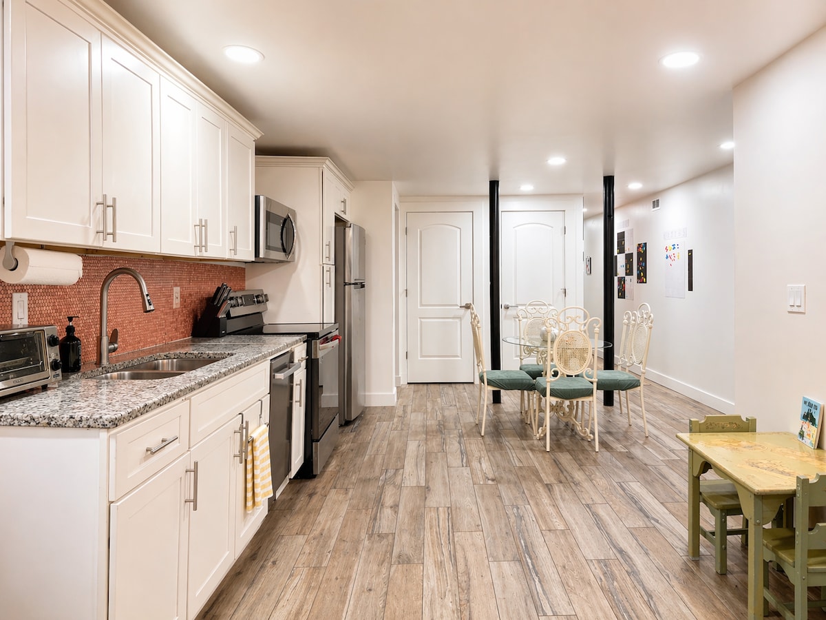 ¡Bienvenido a su elegante escapada en el centro de Buford! Esta casa adosada de 2 dormitorios y 2,5 baños tiene capacidad para 4 personas y cuenta con 2 camas tamaño king, una cocina totalmente equipada y televisores con streaming en todas las habitaciones. Mantente cómodo con calefacción/aire acondicionado central, wifi rápido + espacio de trabajo y lavadora/secadora en la unidad. El aparcamiento reservado para un máximo de 4 vehículos (entrada + garaje) hace que su estancia sea fácil y cómoda. ¡Perfecto para relajarse después de explorar todo lo que Buford tiene para ofrecer!