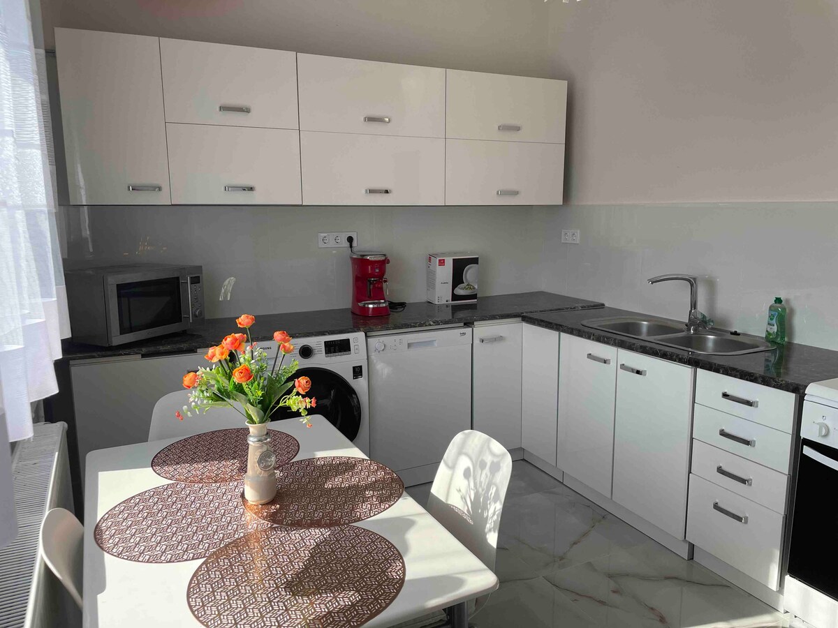 Estarás cerca de todo si te alojas en esta ubicación céntrica. ¡Dos dormitorios, un amplio salón y una cocina bien equipada os esperan! Frente al edificio hay un servicio regular de autobús al zoológico Xantus János. El parque acuático y de aventuras RQ se encuentra a 10 minutos a pie. Hay aparcamiento gratuito a orillas del río (100 metros),