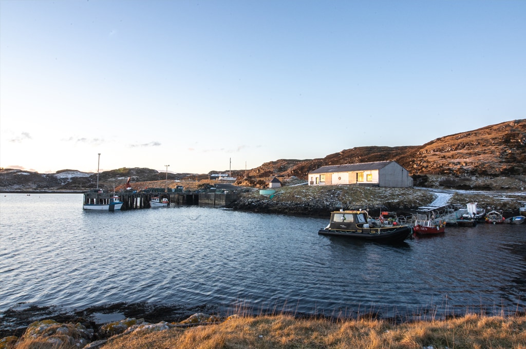 La pequeña yurta de madera en Caolas Gallery es una casa redonda de madera original con techo verde y ventanas panorámicas que ofrecen una vista ininterrumpida del mar hasta la isla de Scalpay y el sureste de Harris. Las características incluyen una ventana de techo de cúpula central, un baño, una cocina, sillas cómodas y una estufa de leña, y por supuesto una cama doble. La propiedad goza de una orientación sur con mucha luz natural, está bien aislada, es cálida y acogedora.