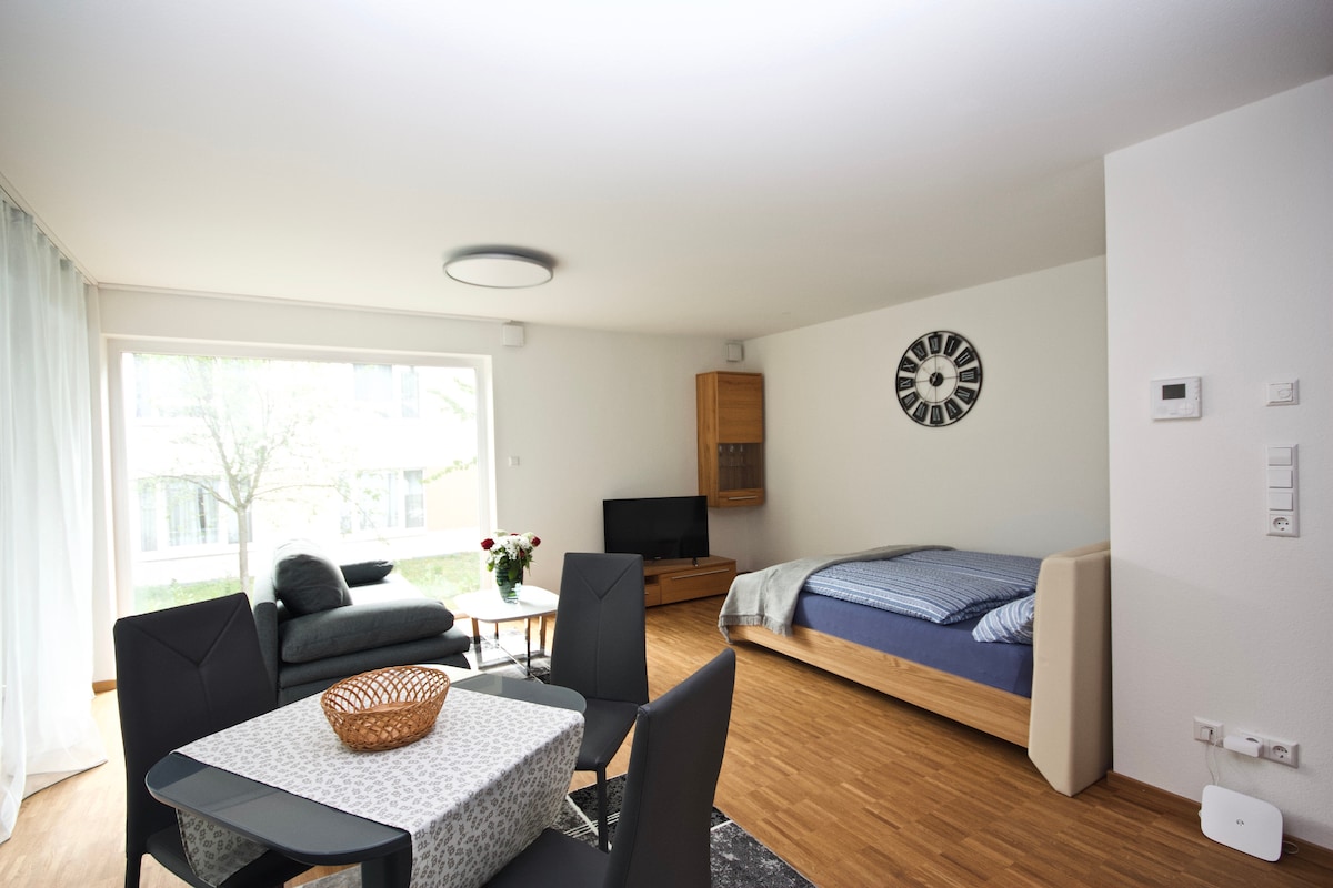 Feel at home in our recently renovated apartment (2 rooms, kitchen, bathroom). Centrally located in the Baden-Baden Rebland, you can find a variety of sporting and cultural offers with an excellent infrastructure. The ca. 50 m2 apartment will inspire you with its equipment. A fully equipped kitchen, TV with Netflix, a double bed, a sofa bed, a rain shower, hairdryer, balcony and free parking on the property ensure your well-being.