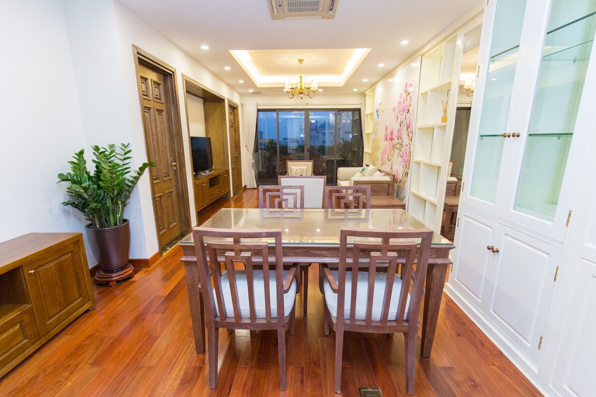 Casa inteligente ubicada en la zona del centro comercial Times City Mega, a 10 minutos del lago HoanKiem, el casco antiguo. Decora calurosamente para la familia. Restaurantes de cocina asiática alrededor, piscina y gimnasio, tienda práctica en la planta baja, ... Parque infantil al aire libre para niños. salón de negocios en la planta baja, internet gratuito y sofá de escritorio.