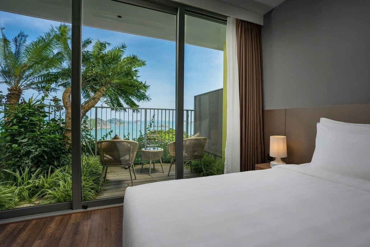 Habitación doble de lujo con vistas a la piscina | Central Cat Ba