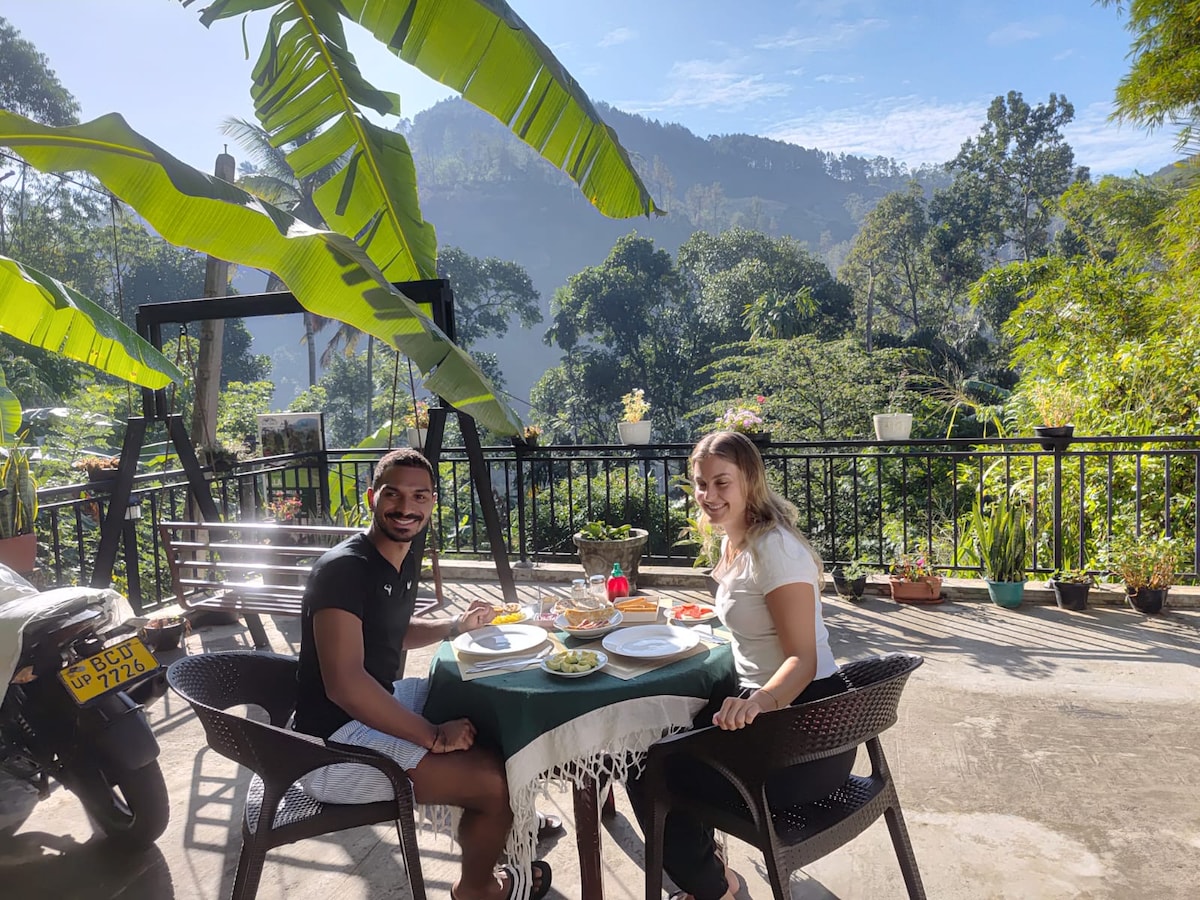 Tucked among the tea hills of Ella, Green Wood Hotel offers a peaceful, homely stay just a short walk from the Ella Rock trail, natural swimming pools, and hidden waterfalls. The hotel has three cozy rooms, each with a private bathroom and balcony overlooking the tea estate. You will be staying in a double room. Every morning, we’ll serve you a free homemade breakfast, and we’re happy to prepare traditional Sri Lankan lunch and dinner on request.