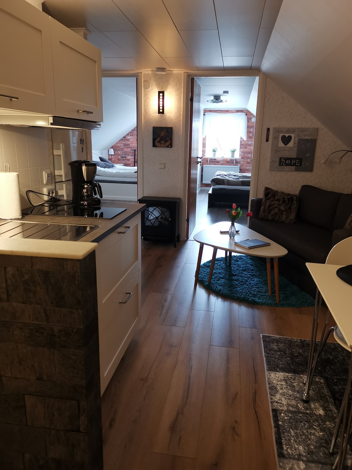 Habitación con cocina (nevera, fogones, cafetera, microondas, agua corriente y porcelana). El baño está en el ático y se comparte con otra habitación, la ducha está en el sótano. Hay bicicletas disponibles para pedir prestadas. El patio se comparte con los otros inquilinos. Es una casa tranquila y la zona es tranquila. Distancia: Centro de la ciudad 1,5 km Tienda de conveniencia a 150 m Hospital a 1,5 km Playa a 2 km Ge-kås 30 km ¡Te damos la bienvenida!