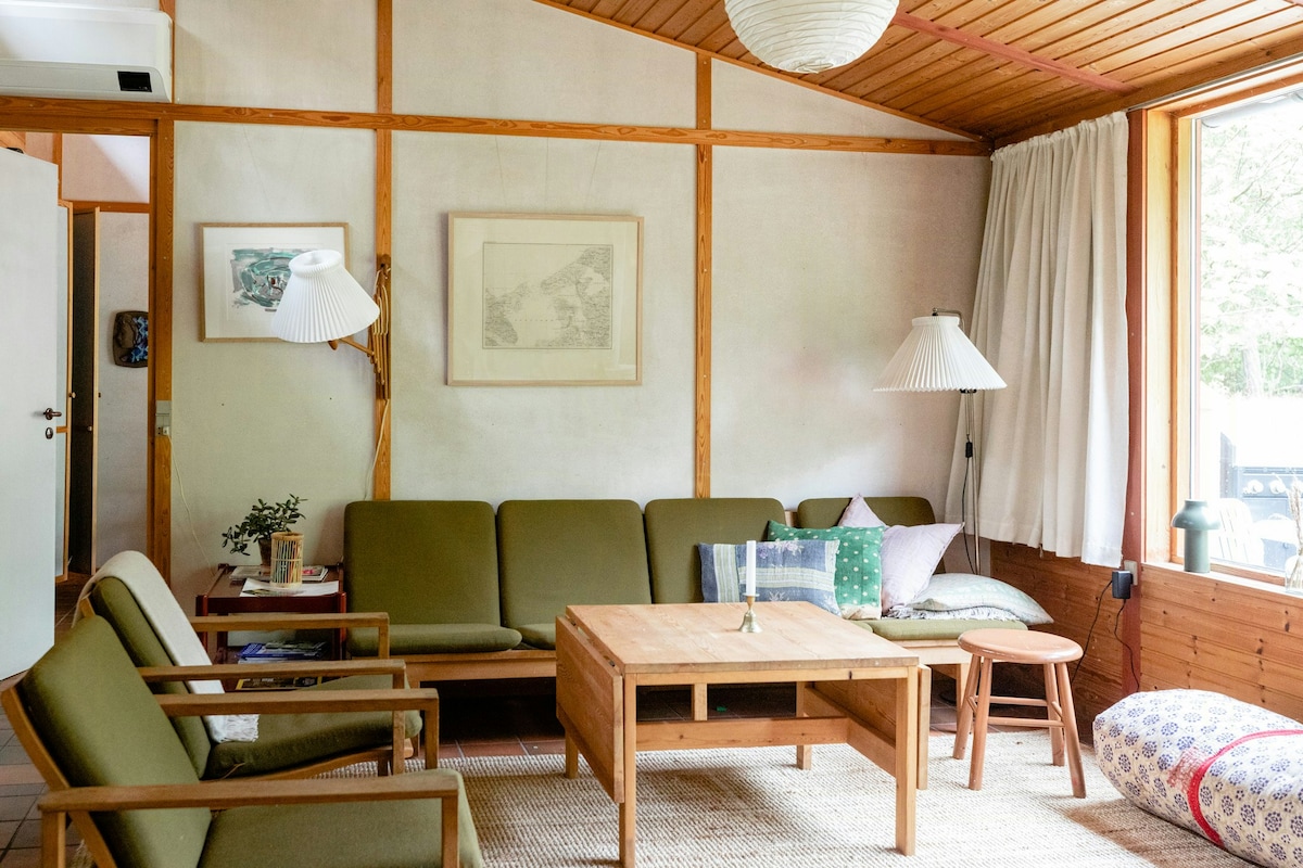 ¡Acogedora y tranquila casa de campo situada en el centro de Kulhuse con encanto, alma y baño en la naturaleza! La casa tiene una sala de estar y cocina-comedor en uno, baño y 2 habitaciones con una cama doble (una también con una cama para niños). Sala de estar con sofá cama. La casa es apta para niños, con juguetes en la casa y el jardín. En el jardín, hay una terraza, fogata, baño silvestre, horno de pizza, hamaca, casa de juegos y columpios. No hay ruido de la carretera. A 5 minutos a pie de las tiendas, a 10 minutos a pie de la playa y en coche del bosque. Nota: uso limitado de natación en aguas abiertas debido a fugas en el otoño de 2025