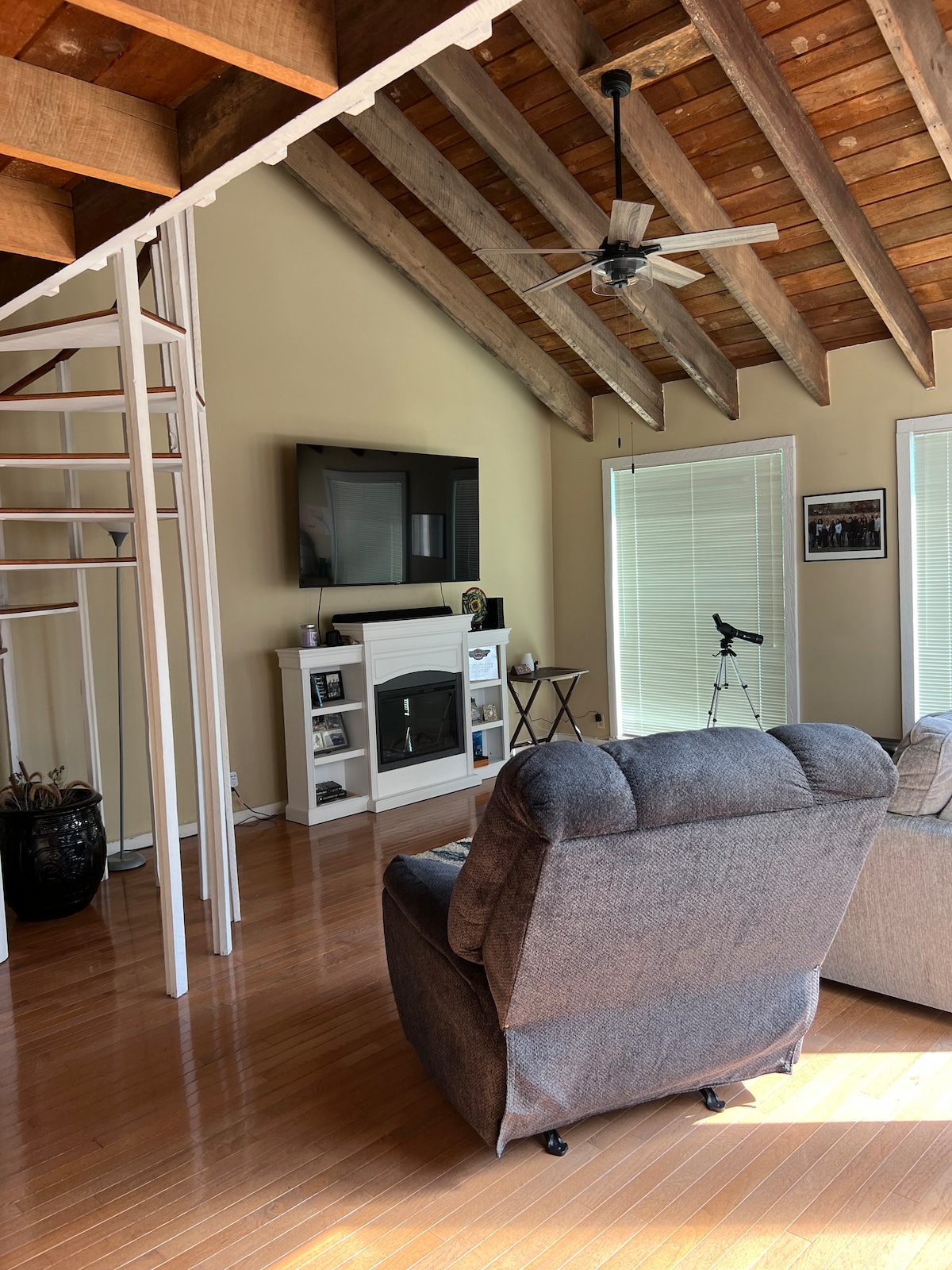 La «Cabaña de la Conexión» se encuentra en las colinas de Morristown, TN. Situada en el sótano de nuestra casa con su propia entrada privada. Nuestro espacio habitable para no fumadores bellamente amueblado y completo con lujosas comodidades como jacuzzi, lujosa cama tamaño king, chimenea, productos horneados caseros, bar de café gourmet, mesa de hockey de aire, máquina de juegos, sala de cine, patio con chimenea y juegos de jardín. ¡Nuestro objetivo es que te sientas más conectado y renovado que cuando entraste! Tus anfitriones, Joshua, Kimberly y los niños.