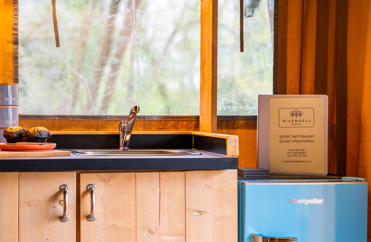 Cherry Safari Tent is a luxury glamping escape for up to 4 guests, perfect for spring and summer. Two king-size beds, cozy furnishings, and a simple kitchenette make relaxing easy, plus an en-suite loo adds convenience. Enjoy the shared heated swimming pool, hot tub and sauna, or toast marshmallows by your private fire pit. Set in peaceful woodland at Rivendell Park, it’s an ideal base for exploring Dorset’s Jurassic Coast and the New Forest.