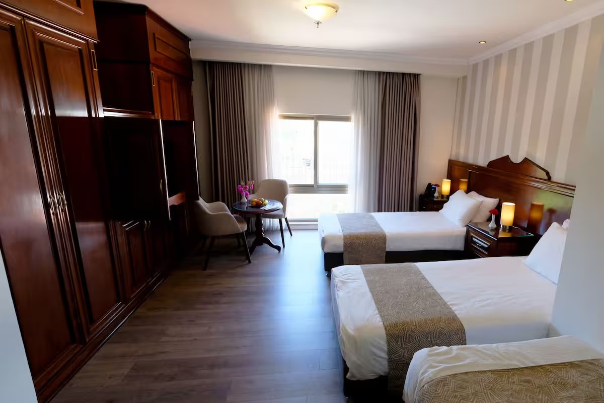 Estamos ubicados en el corazón de la ciudad de Belén, a 5 minutos a pie de la iglesia de la Natividad y a 20 minutos en coche de la ciudad vieja de Jerusalén. Situado en una zona donde puedes encontrar muchos restaurantes y centros comerciales. Tenemos 12 habitaciones dobles super deluxe y gran cocina común y comedor, una sala de estar y una recepción. Podemos organizar fiestas privadas y guiar a nuestros huéspedes durante su visita a la ciudad santa