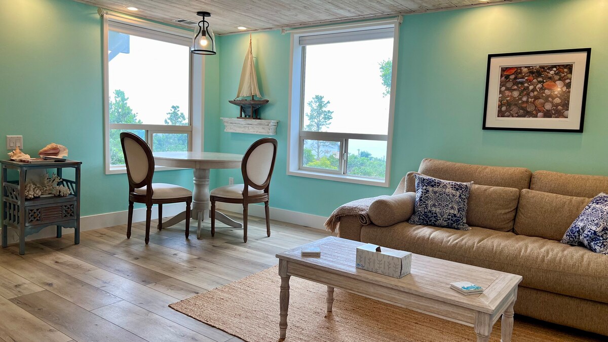 - Nota: no se admiten niños pequeños ni mascotas. - Estilo artesanal único. - A pocos pasos de Nature Trail, en Park Hill, subiendo la colina desde el parque y la playa. - Asiento junto a la ventana y terraza con vistas al mar a lo lejos. - Wifi gratuito, AppleTV con Netflix gratuito. - Escaleras. Nota: No podemos alojar niños pequeños ni mascotas. Dos dormitorios, 2 baños en diferentes niveles para mayor tranquilidad y privacidad. Un tranquilo refugio lleno de arte cerca de senderos naturales, parques y playas. Nota: Hay una tarifa adicional para más de 2 huéspedes.