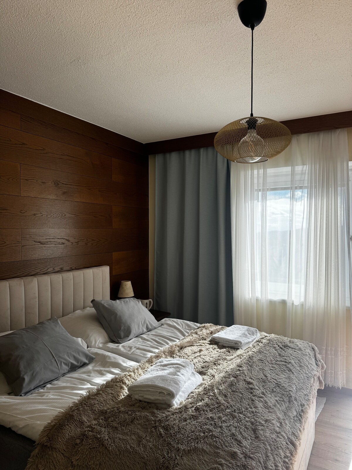 Nuestro apartamento de diseño está convenientemente ubicado en las afueras de la ciudad y cuenta con un gran jardín, zona de barbacoa, varios lugares acogedores para relajarse y un estanque natural donde nadar. El apartamento, decorado con un estilo extravagante, se encuentra en el primer piso. Cocina con cafetera expreso, lavavajillas, lavadora, así como terraza y vistas al campo, TV e internet. Cuarto de baño con ducha de efecto lluvia y vestidor.
