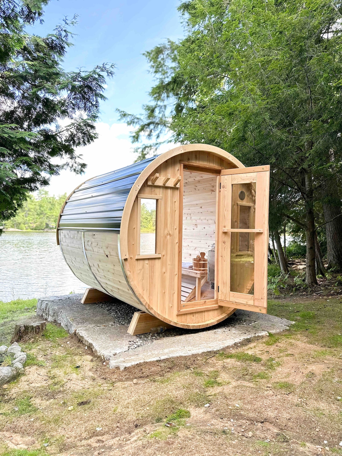 Un refugio privado junto al lago con sol y puestas de sol durante todo el día, con la cabaña principal, sauna de madera, kayaks y bote de remos, costa privada y muelles. Wifi ilimitado, una cocina totalmente equipada, dos fogatas, muelles, excelente natación (limpio y libre de malezas) en una propiedad boscosa privada. Está a 15 minutos de Haliburton con muchas tiendas. La ropa de cama y las toallas tienen un coste adicional de 30,00 por cama. Por favor, consulta. Los fines de semana largos son de 3 días/noches como mínimo.