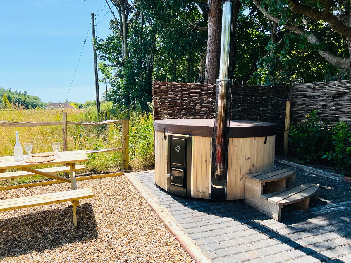 Ven y disfruta de nuestro lujoso carromato con idílicas vistas al campo. Relájate en nuestro jacuzzi de leña o disfruta de una cena al aire libre. Asa nubes en una fogata o simplemente relájate y escucha el canto de los pájaros. Da un paseo por los campos con senderos locales justo en la puerta. Tenemos playas a 10 minutos en coche, pubs locales y cerca de lugares históricos como el castillo de Herstmonceux y el centro de ciencias del observatorio, la abadía de Battle, el castillo de Pevensey y muchos más.