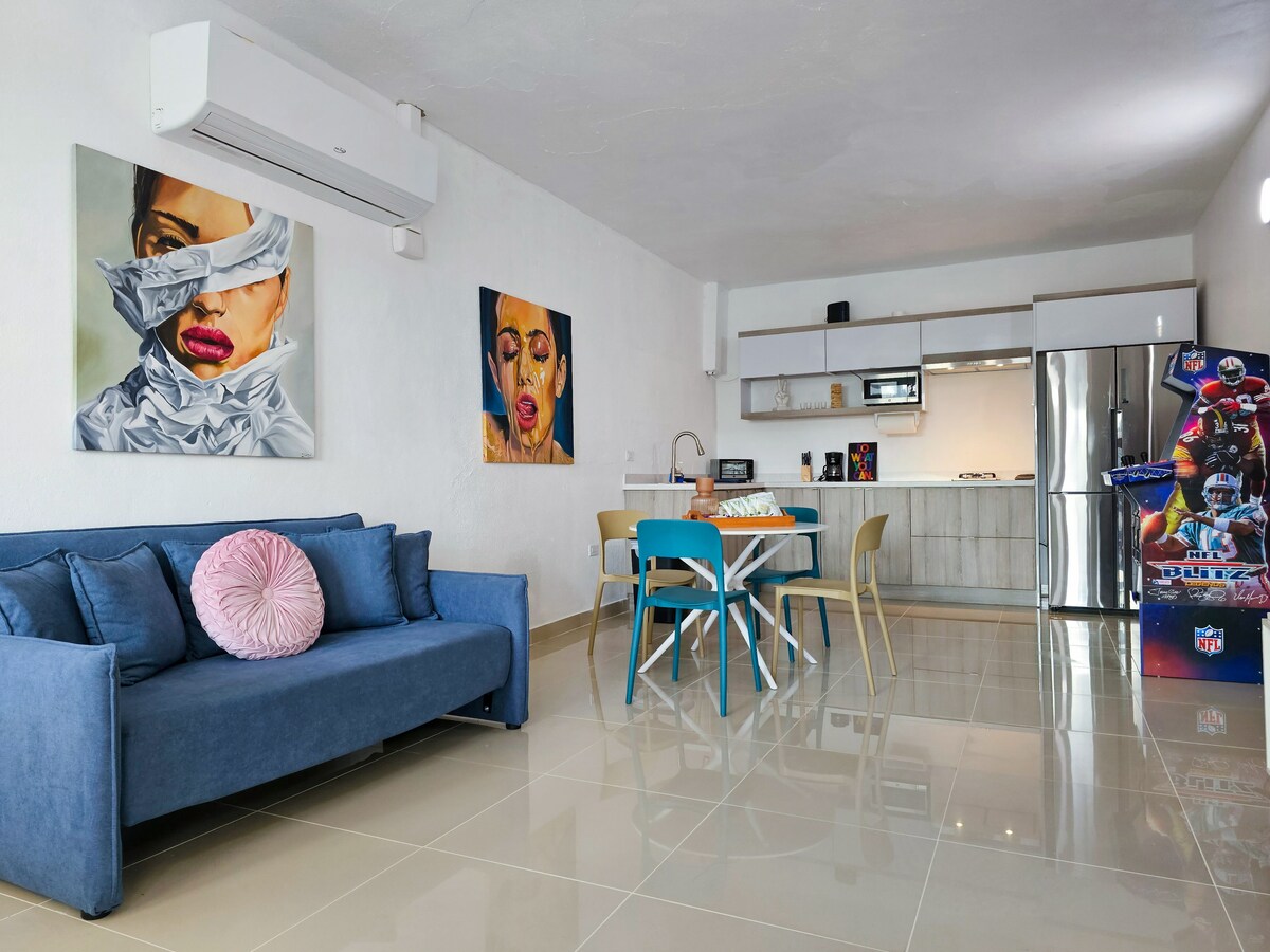 This place has a strategic location: it will be easy to plan your visit! Front of Plaza del Norte Mall, main street , near the Highway . Cafe Delicias Café on the first floor, shops, restaurants, coast and places of interest nearby. Includes $15 per night certificate to spend at Delicias café. Beautiful view of the sea and steps from the coast. All the kitchen basics Queen bed and a sofa bed in the living room. It’s comfortable and modern. Located on the third floor with stairs, not elevator.
