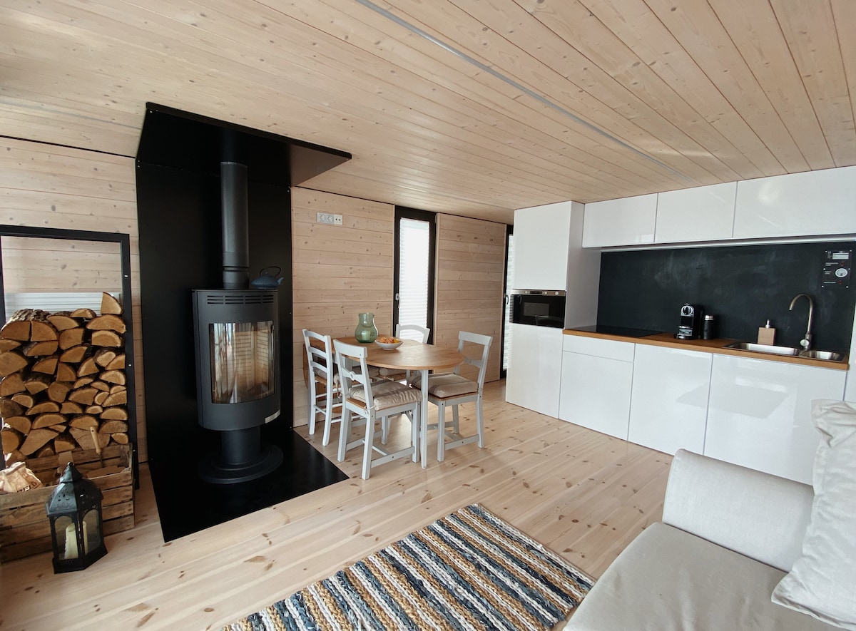 LUNA es un apartamento flotante exclusivo de estilo loft. En el «LUNA» hay un salón con cocina despensa, una cama doble con armario, una ducha y un aseo separado. La "LUNA" se difumina con su entorno a través de las ventanas de vidrio del piso al techo. El aire acondicionado y las cortinas exteriores protegen del calor y garantizan temperaturas agradables. La calefacción por suelo radiante proporciona un calor acogedor incluso en los días fríos. La casa flotante está firmemente ubicada en nuestro puerto y está a solo 7 km de Alex.