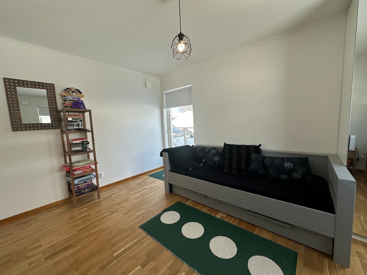 Parte de una casa más grande con entrada propia. Dormitorio recién renovado. La estufa de leña está en la granja. Cerca directa de lagos, ríos, montañas, rutas de senderismo, setas, bayas, pesca y caza. A 10 minutos caminando de Drottningleden, a 8 km de Hemavan (centro comercial, restaurantes, pubs, casa de baños, cafetería, etc.) Conexión directa a la telecabina. Los helicópteros se encuentran en la zona, perfecto si quieres llegar rápidamente a los campos de pesca y caza mágicos en las montañas.