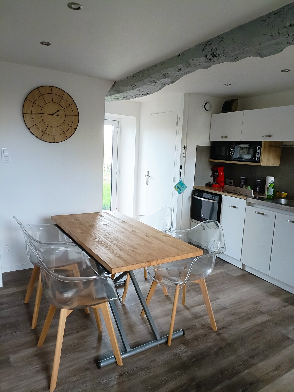 Mi alojamiento está situado cerca de la playa de Caroual y del centro de Bourg, en una zona muy tranquila. Disfrutará de mi alojamiento por la luminosidad, la cama cómoda, la cocina y la comodidad. Mi alojamiento es perfecto para parejas y familias (con hijos): es un gran T2 de 55 m2, que consta de un dormitorio, un baño, una sala de estar, una zona de cocina, una terraza.