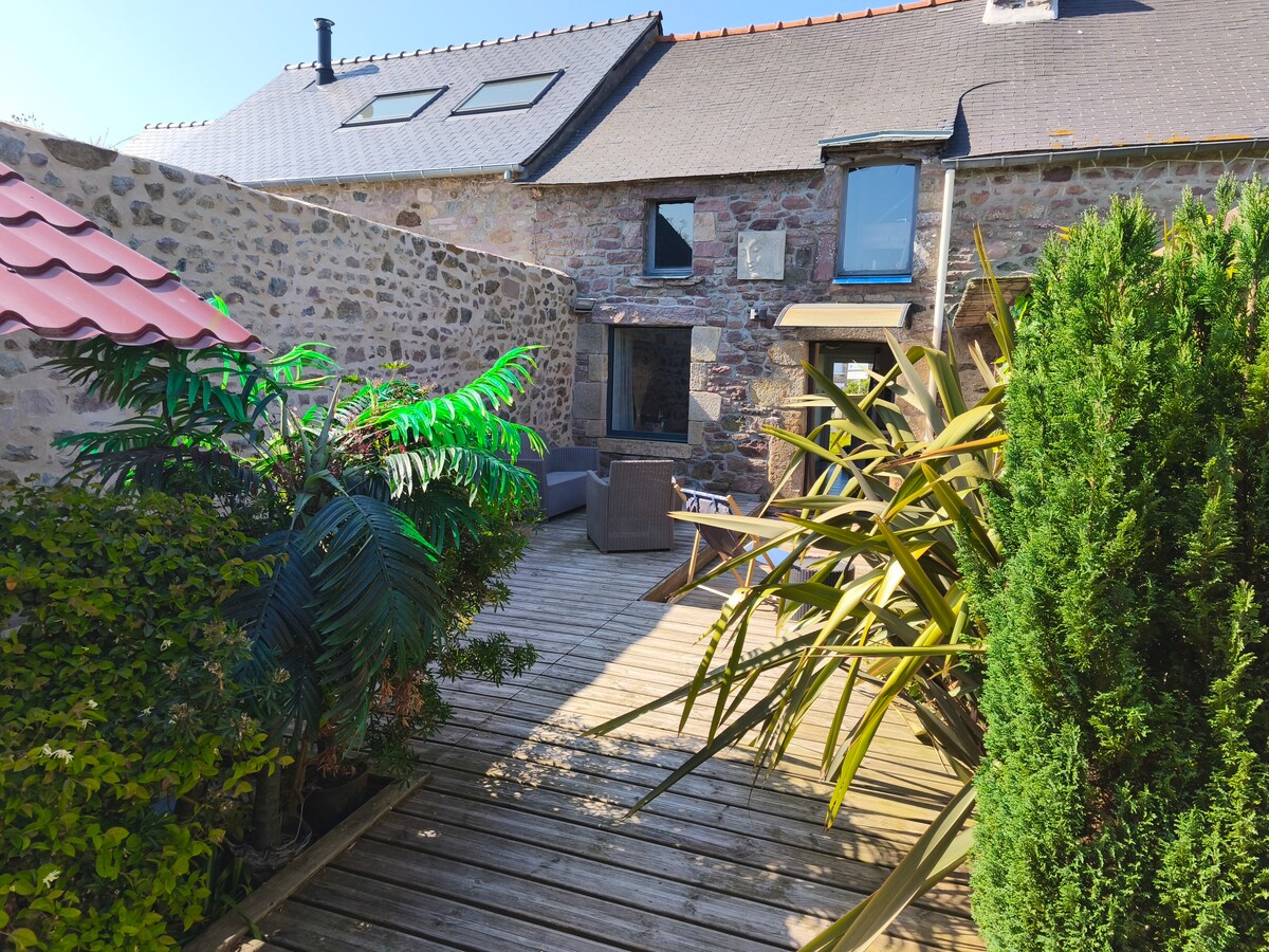 pequeña casa totalmente renovada, terraza totalmente equipada. plaza de aparcamiento privado. una habitación (cama de 140 cm x 190 cm) con armario. (sábanas incluidas) cuarto de baño con ducha, toallas incluidas. una cama (90x190) hecha a petición en una habitación contigua a la habitación y baño. cerca de la zona comercial con lavandería y transporte público. A 1,5 km de la ruta ciclista y a 2 km de la GR34. cerca de las playas, el cabo de Erquy y el cabo Frehel, clasificados como gran sitio de Francia.