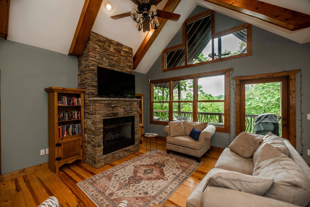 ¡Esta cabaña es un paraíso para los artistas! Escondido en lo alto de una montaña, luego en un valle privado en el campo de Apple, el "Cliffhanger" en el bosque es una verdadera joya. Verano nadando en su piscina al aire libre privada con una característica de piedra preciosa genuina y luces LED que cambian de noche, y jardín ajardinado con plantas y arte nativos. Hay una cámara Ring apuntando a la entrada por motivos de seguridad. Enorme envolvente alrededor del porche cubierto y gran terraza y piscina para disfrutar al aire libre.