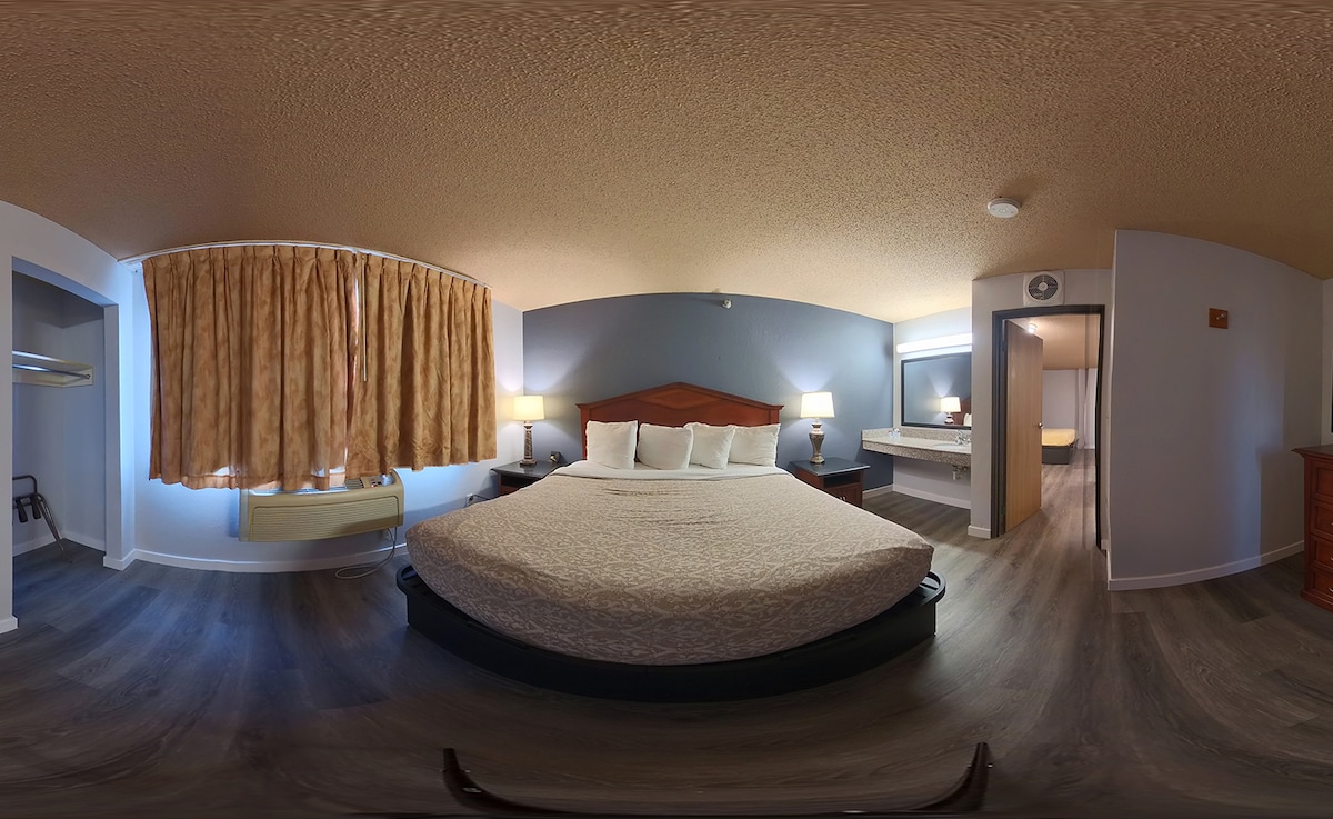 This listing is for 3 separate rooms within a hotel. The price shown in the listing covers all 3 rooms. ✦ Each room is 300 sq. ft, equipped with kitchen with basic amenities, TV. ✦ Rooms are not adjoining and possibly not next to each other. Spaces are assigned upon arrival based on availability. ✦ Daily cleaning services included in the nightly price. There are a few additional details to know before you book: ✦ The minimum age required for check-in is 21 years old. ✦ Please ensure you have a valid ID for check-in, as it is mandatory for entry.